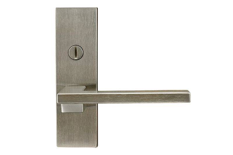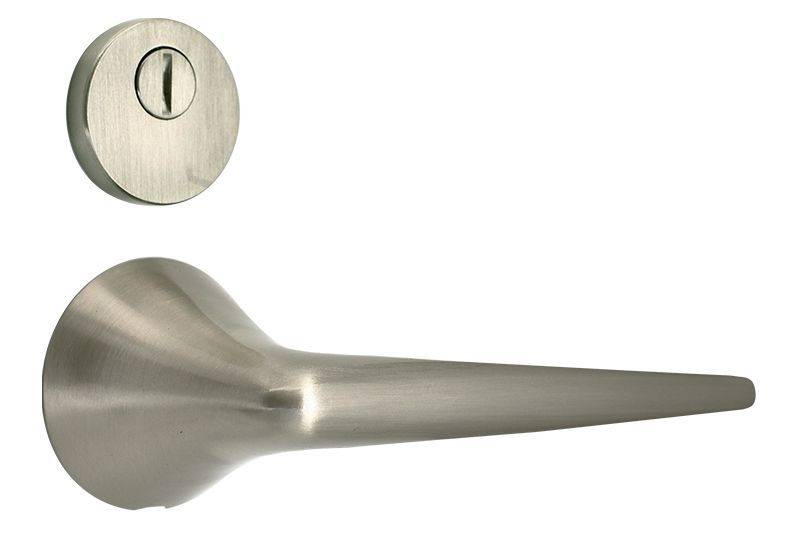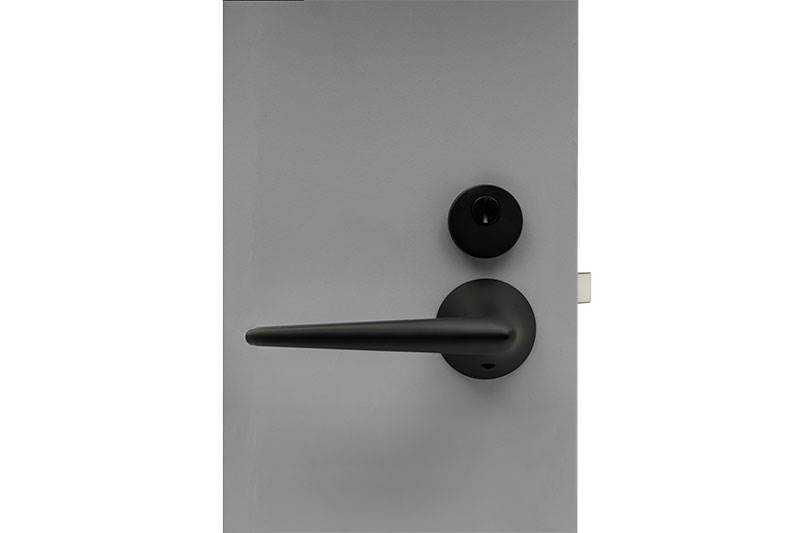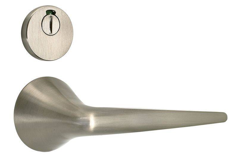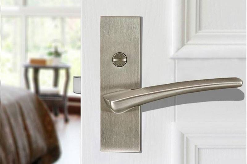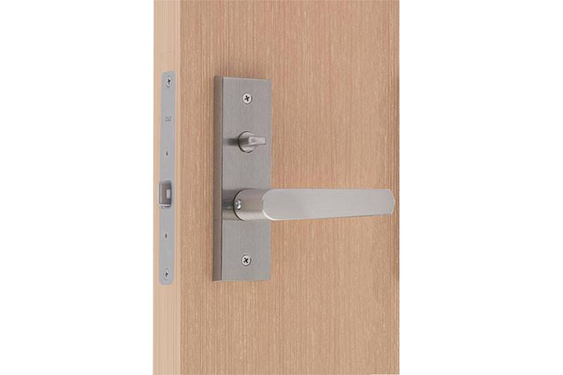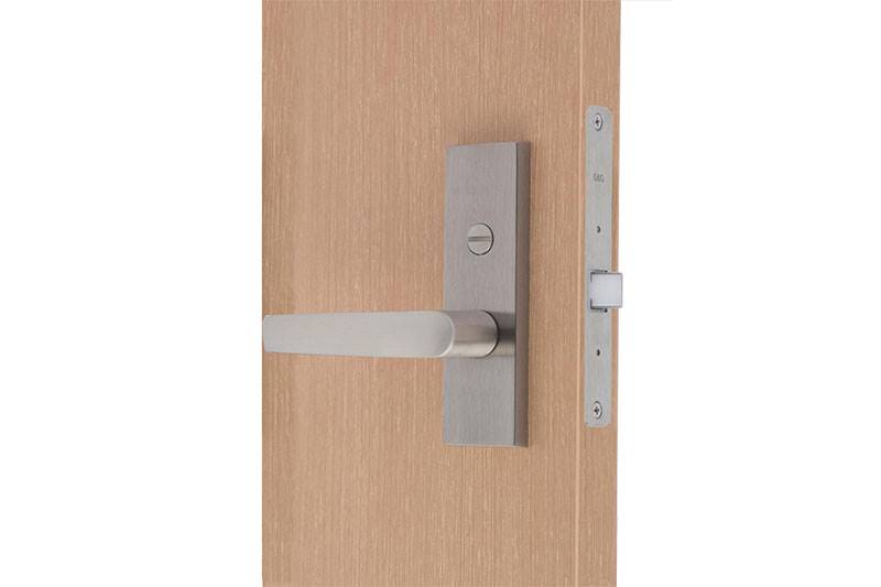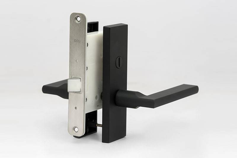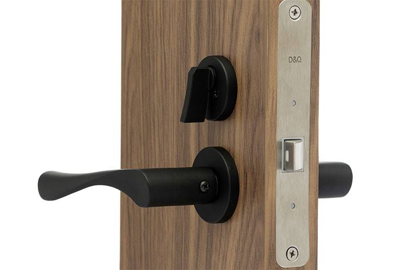 - Замок врезной сувальдный с поворотной ручкой выполнен без отверстия для ключа. Дверь можно запереть внутренней ручкой и открыть снаружи с помощью жетона. Такая конструкция позволяет быстро отпирать дверь снаружи в случае аварийной ситуации.