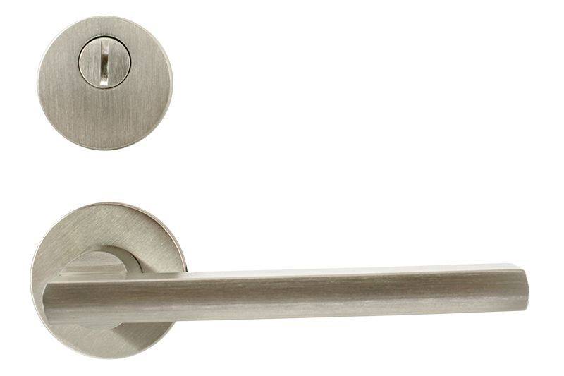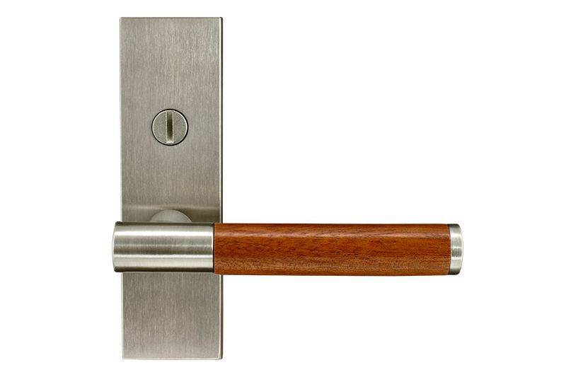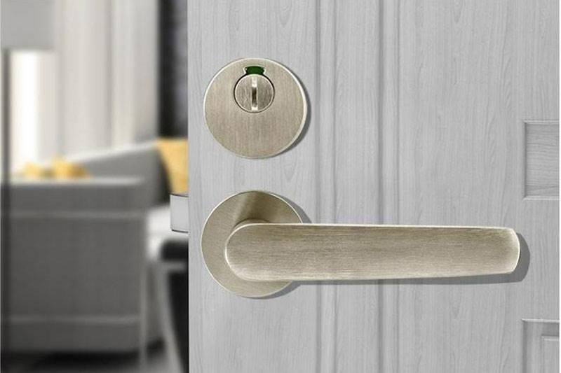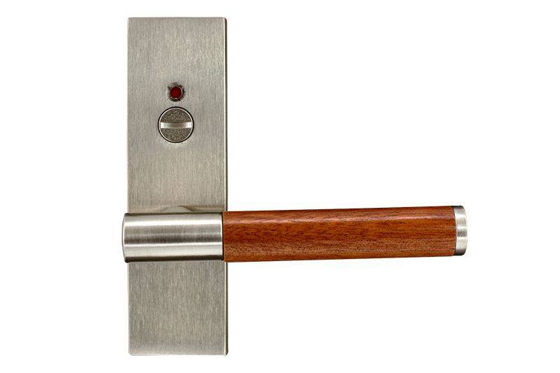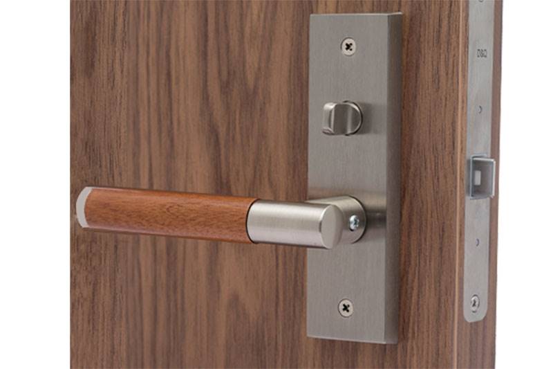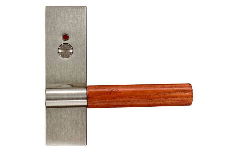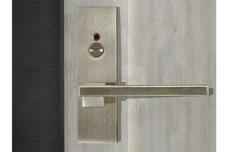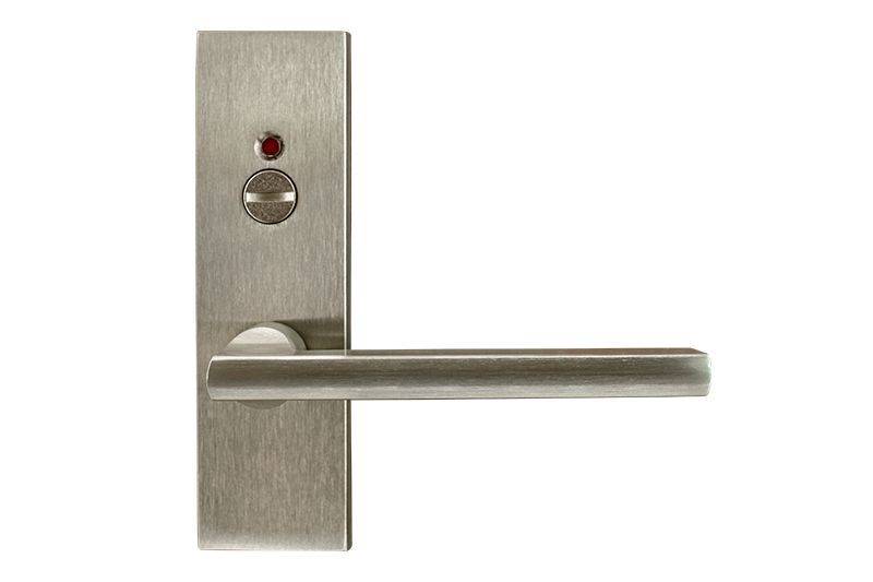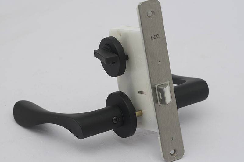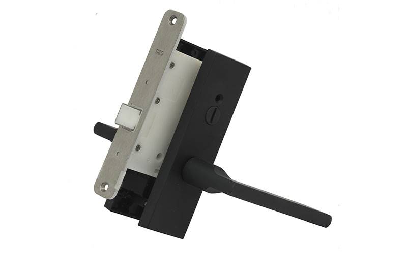 - Замок врезной сувальдный с поворотной ручкой выполнен без отверстия для ключа. Дверь можно запереть внутренней ручкой и открыть снаружи с помощью жетона. Такая конструкция позволяет быстро отпирать дверь снаружи в случае аварийной ситуации.